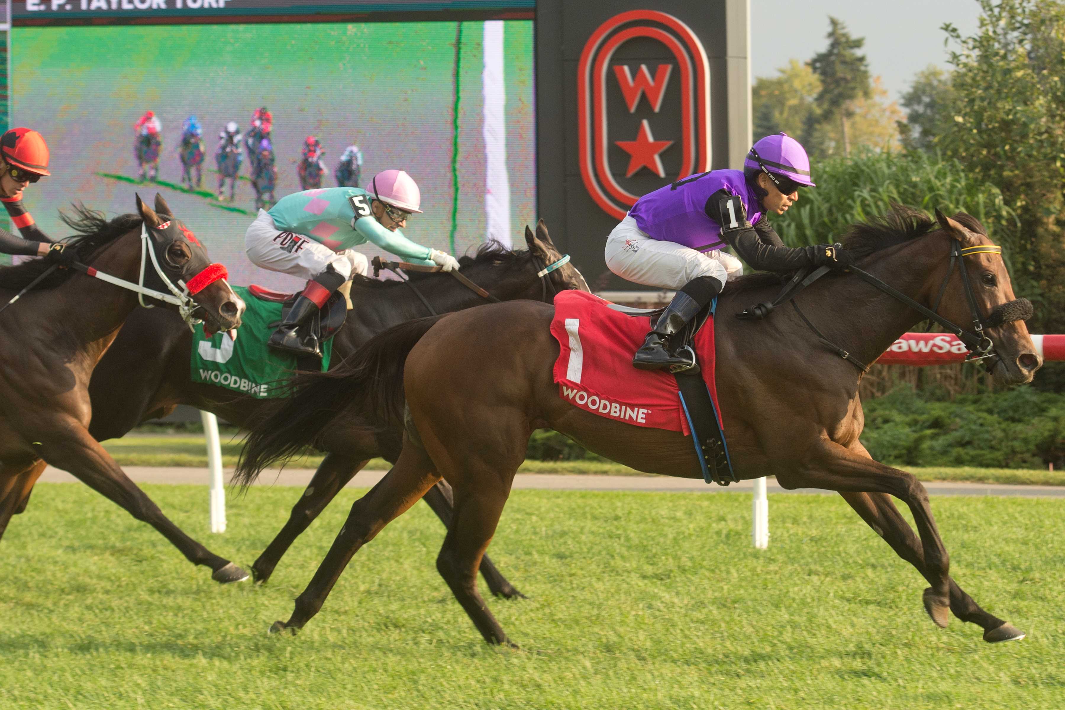 Cheers for Campos Jose Campos is holding a hot hand at the Toronto oval. The journeyman’s latest impressive score came in Saturday’s $100,000 Zadracarta Stakes when he piloted Owen’s Tour Guide to victory in the five-furlong sprint over the inner turf, part of a two-win day. The 6-year-old gelding is trained by Willie Armata for owner Tequesta Racing Inc. Owen’s Tour Guide and jockey Jose Campos winning the Zadracarta Stakes on September 21, 2024 at Woodbine (Michael Burns Photo) Setting the bar Coffee Crisp, trained by Steven Chircop for Zilli Racing Stables, broke her maiden in Saturday’s third race. The daughter of Twirling Candy took the six-furlong turf race by three-quarters of a length in a time of 1:09.53. Bred by Green Lantern Stables LLC, the 3-year-old dark bay paid $9 for the win. Coffee Crisp and jockey Jose Campos winning Race 3 on September 21, 2024 at Woodbine (Michael Burns Photo) Boo! Heard a Ghost, bred, trained, and owned by Laura Krasauskaite, conjured up a 27-1 score in his career bow on Sunday. Under Fraser Aebly, the 2-year-old son of Shaman Ghost-Heard That won the six-furlong main track race by a neck. Heard a Ghost and jockey Fraser Aebly winning Race 5 on September 21, 2024 at Woodbine (Michael Burns Photo) On Tap Live racing continues this weekend with the Grade 3 $135,000 Durham Cup in the spotlight on Saturday. The $400,000 Breeders’ Stakes, third jewel in the Canadian Triple Crown series, headlines Sunday’s card. First post for both days is 1:10 p.m. Share This:Share