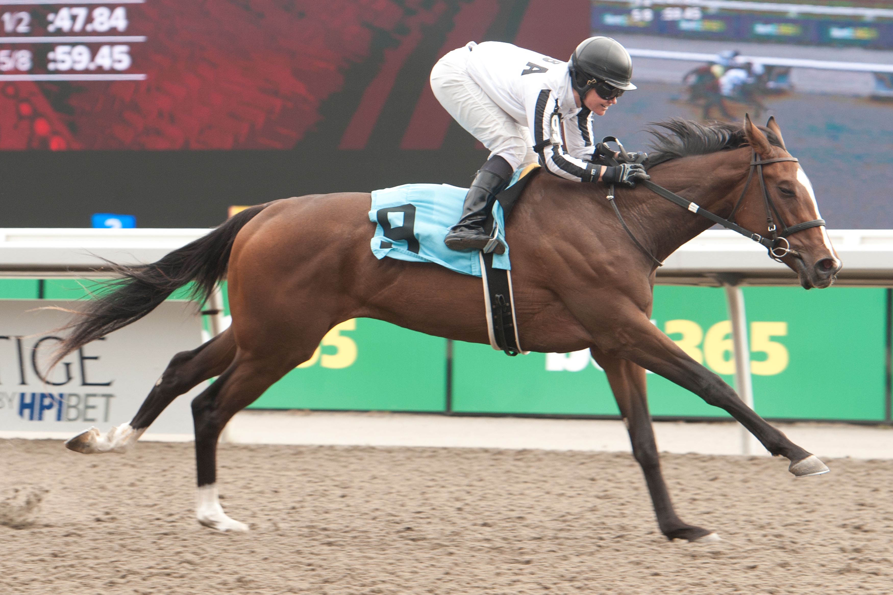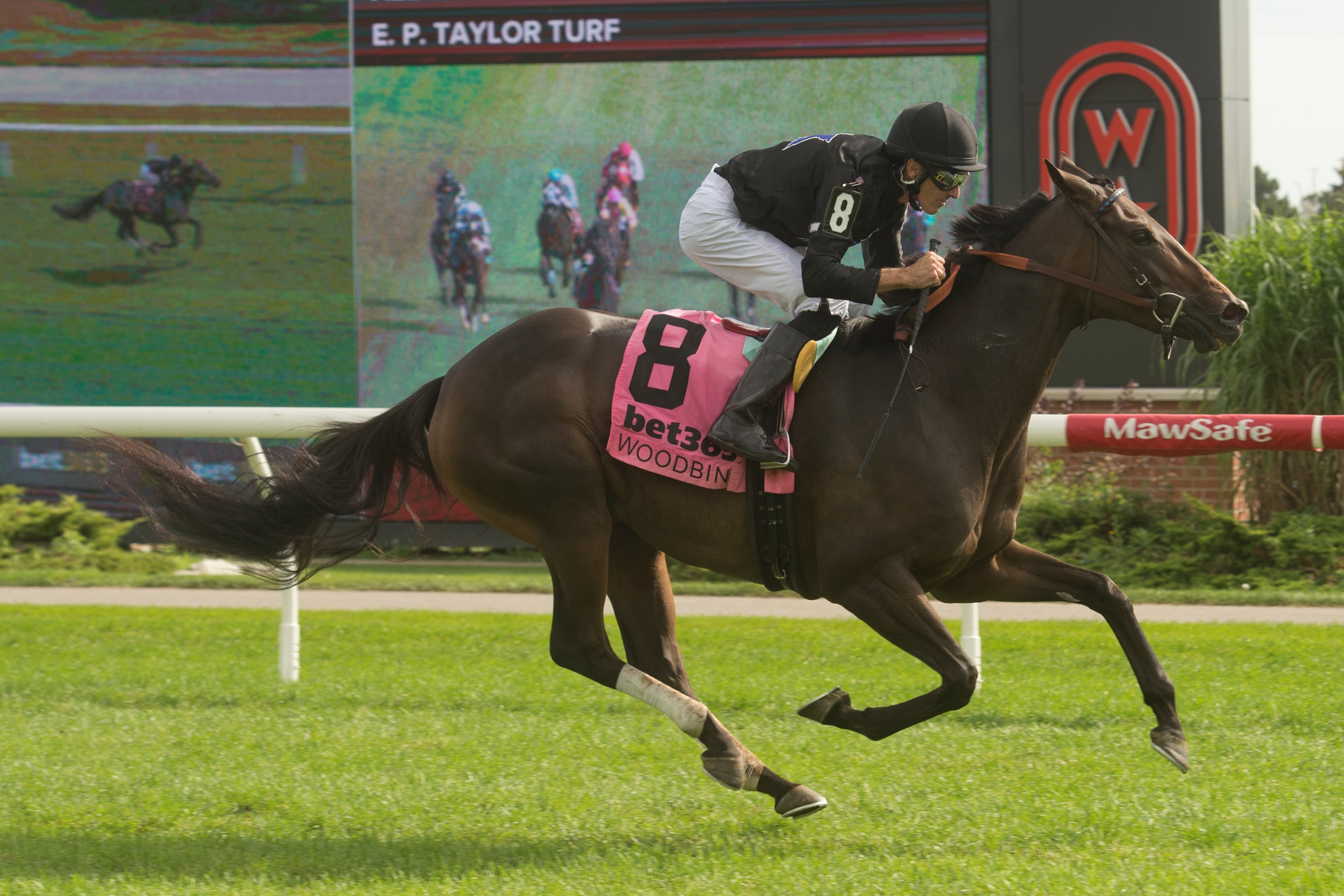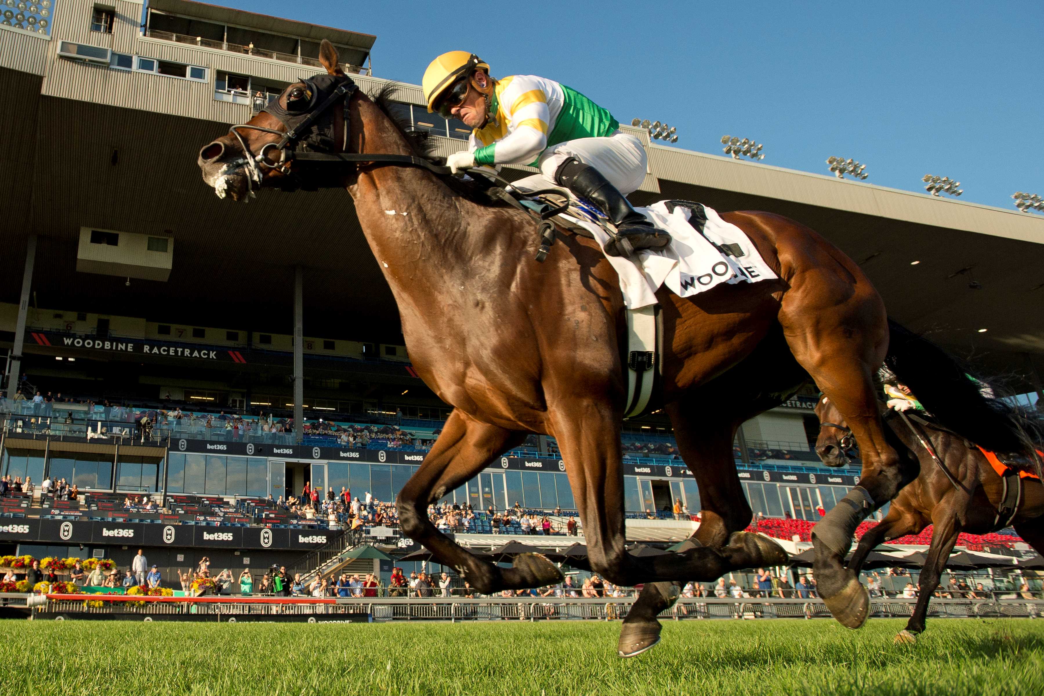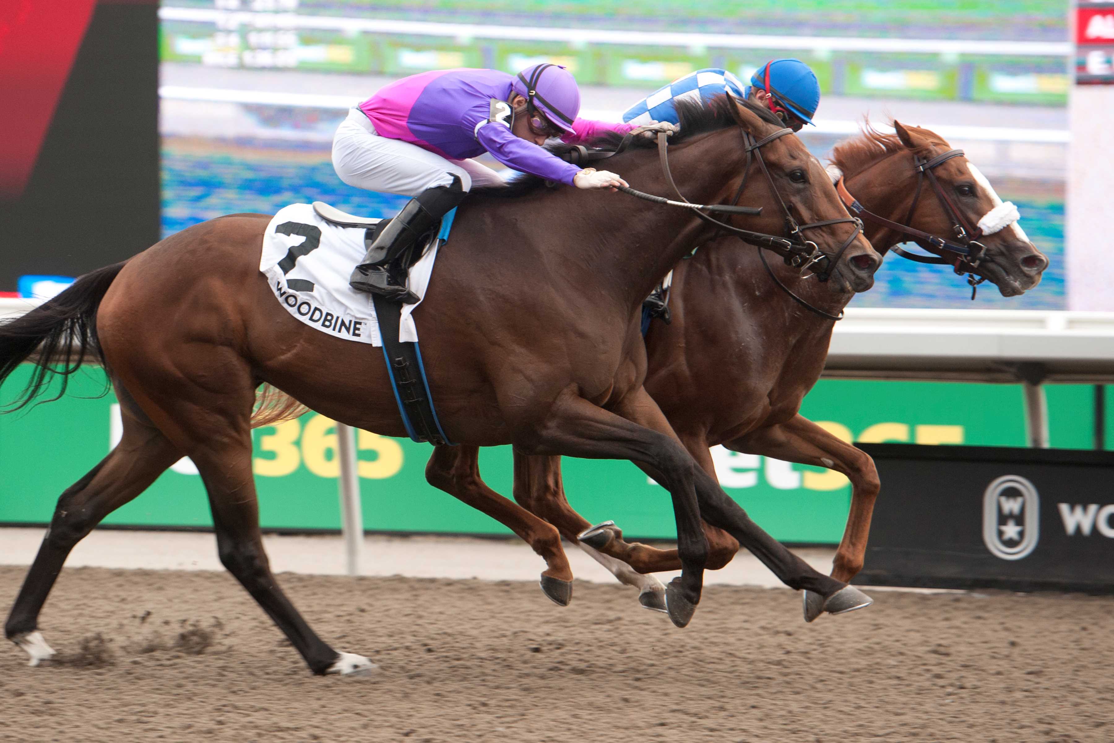 Ducks in a row Dresden Row, a 3-year-old son of Lord Nelson-Elle Special, trained by Lorne Richards for owners True North Stable and Bloom Racing Stable, got the better of his older rivals in Saturday’s Grade 3 $135,000 Durham Cup Stakes. Ridden by Ryan Munger, the colt, bred in Kentucky by TCR Ranch, is now 4-1-2 from 7 starts. Dresden Row and jockey Ryan Munger winning the Durham Cup (G3) on September 28, 2024 at Woodbine (Michael Burns Photo) As easy as 1,2,3 Chiefswood Stables swept the podium in Sunday’s $400,000 Breeders’ Stakes, final jewel in the Canadian Triple Crown. Roscar took home gold, Saccharine the silver (both trained by Rachel Halden) and Side Street, trained by Layne Giliforte, earned bronze. A $1 all-Chiefswood triactor returned $131.25. Roscar and jockey Justin Stein winning the Breeders’ Stakes on September 29, 2024 at Woodbine (Michael Burns Photo) $58 reasons Neenah, with Skye Chernetz in the irons, pulled off a 28-1 upset in Saturday’s third race. Owned by Richard Forbush and trained by David Cotey, the 2-year-old daughter of Copper Bullet-Tahfeez won the 5 ½-furlong main track race by 2 ¾ lengths and returned $58.40 for the win. Neenah and jockey Skye Chernetz winning Race 3 on September 28, 2024 at Woodbine (Michael Burns Photo) Must know… Leading rider Sahin Civaci won four races on Sunday and in doing so, reached the century mark for wins on the year. Geneva, owned and trained by Kelly Callaghan and ridden by her husband, Slade Callaghan, won Sunday’s fourth race. The daughter of Air Force Blue-Geographic, bred by Summerhill Farm, won the 7 ½-furlong inner turf race by 2 ¾ lengths and paid $29.50. Geneva and jockey Slade Callaghan winning Race 4 on September 29, 2024 at Woodbine (Michael Burns Photo) On Tap Live racing continues this weekend with four turf stakes races on Saturday, three (Grade 2 Nearctic, Grade 2 bet365 Dance Smartly and Grade 3 HPIbet Singspiel) on the E.P. Taylor and one (bet365 Algonquin) on the inner. On Sunday, Canadian-foaled rookies tackle 1 1/6 miles over the E.P. Taylor. Post time for both days is 1:10 p.m. Share This:Share