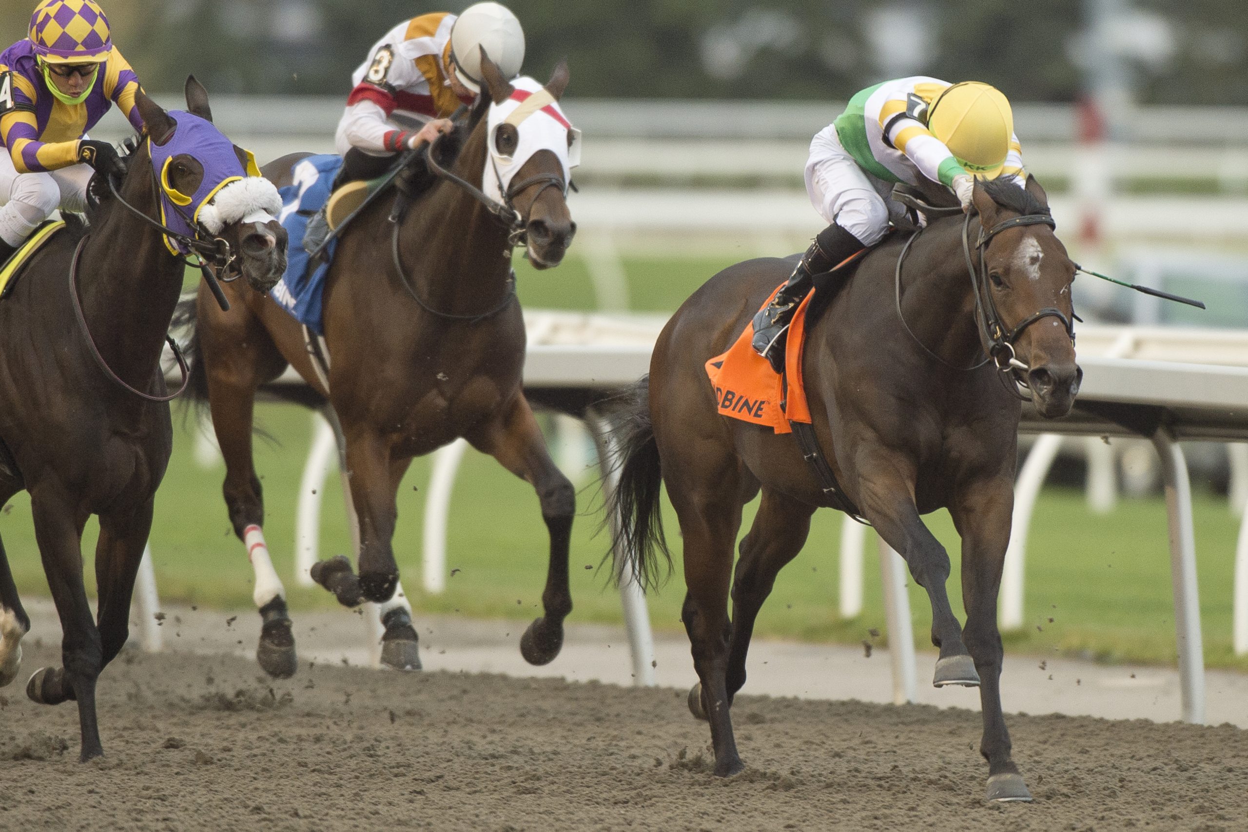 TORONTO, October 21, 2023 – Touch’n Ride crossed the wire second, but was placed first after Solo Album was disqualified in the $150,000 Ontario Derby (G3), on Saturday at Woodbine. Solo Album, breaking from the outside post, Twin City, and Velocitor, who won the Prince of Wales Stakes – the middle jewel in the Canadian Triple Crown – vied for the early lead in the 1 1/8-mile Tapeta event for 3-year-olds, as slight 2-1 choice Touch’n Ride sat just off the trio into the first turn. Twin City, with Emma-Jayne Wilson in the irons, had to check sharply into that first turn, as Solo Album crossed over to take command and then hold a 1 ½-length advantage over Velocitor through an opening quarter in :23.79. It was Solo Album still on top through a half in :48.49, followed by Velocitor, Touch’n Ride and 5-2 second choice Stanley House, who had quickly moved from sixth into fourth. As the nine-horse field entered the turn for home, Solo Album was still on top of the chart but found herself in the crosshairs of Touch’n Ride, who looked to reel her in but was unable to collar the filly. Cool Kiss, at 25-1, arrived late on the scene, as did 34-1 Twowaycrossing. Solo Album crossed the wire a length clear of Touch’n Ride, who was a further 1 ¼ lengths ahead of Cool Kiss. Twowaycrossing finished fourth. The final time was 1:48.93. Wilson and Twin City’s trainer Stuart Simon both claimed foul against Sahin Civaci, aboard Solo Album, which was accompanied by a stewards’ inquiry. Solo Album was subsequently placed fifth while Twin City moved into fourth position. Forever Dixie, Stanley House, American Blaze and Velocitor rounded out the order of finish. Souper Blessing was scratched. Touch’n Ride and jockey Kazushi Kimura winning the Ontario Derby on October 21, 2023 at Woodbine (Michael Burns Photo) “When I checked in the program with a bunch of closers, but he has a natural speed from the beginning,” said winning jockey Kazushi Kimura. “I’m trying to stay close, and he did it today. Still, was too much pressure all the way, but he is a very nice horse. He tries so hard.” The son of Candy Ride (ARG)-Niigon’s Touch, trained by Layne Giliforte for breeder and owner Chiefswood Stables, debuted this July at Woodbine and finished third. One race later, the bay gelding broke his maiden and then finished fifth in The King’s Plate on August 20. Unraced at 2, Touch’n Ride, who arrived at the Ontario Derby off a sterling performance in the Breeders’ Stakes, the final jewel in the Canadian Triple Crown series, on October 1, is now 3-0-1 from five lifetime starts. “I’m really proud of him,” said Canadian Horse Racing Hall of Fame jockey Robert Landry, now General Manager of Chiefswood Stables. “Earlier in the year, we didn’t even nominate him to the Triple Crown. He was a slow developer. In April, Layne and I watched him work together and I said, ‘We may have made a mistake not nominating him.’ You know, you’ve got to let the horses tell you and he did, and he ran a tremendous race. We’ll give him a little break now. He’s done a lot. We’ll give him a chance to get bigger and stronger and bring him back next year.” Touch’n Ride paid $6.80 for the win. Chris Lomon, Woodbine Communications / @WoodbineComms on Twitter Share This:Share