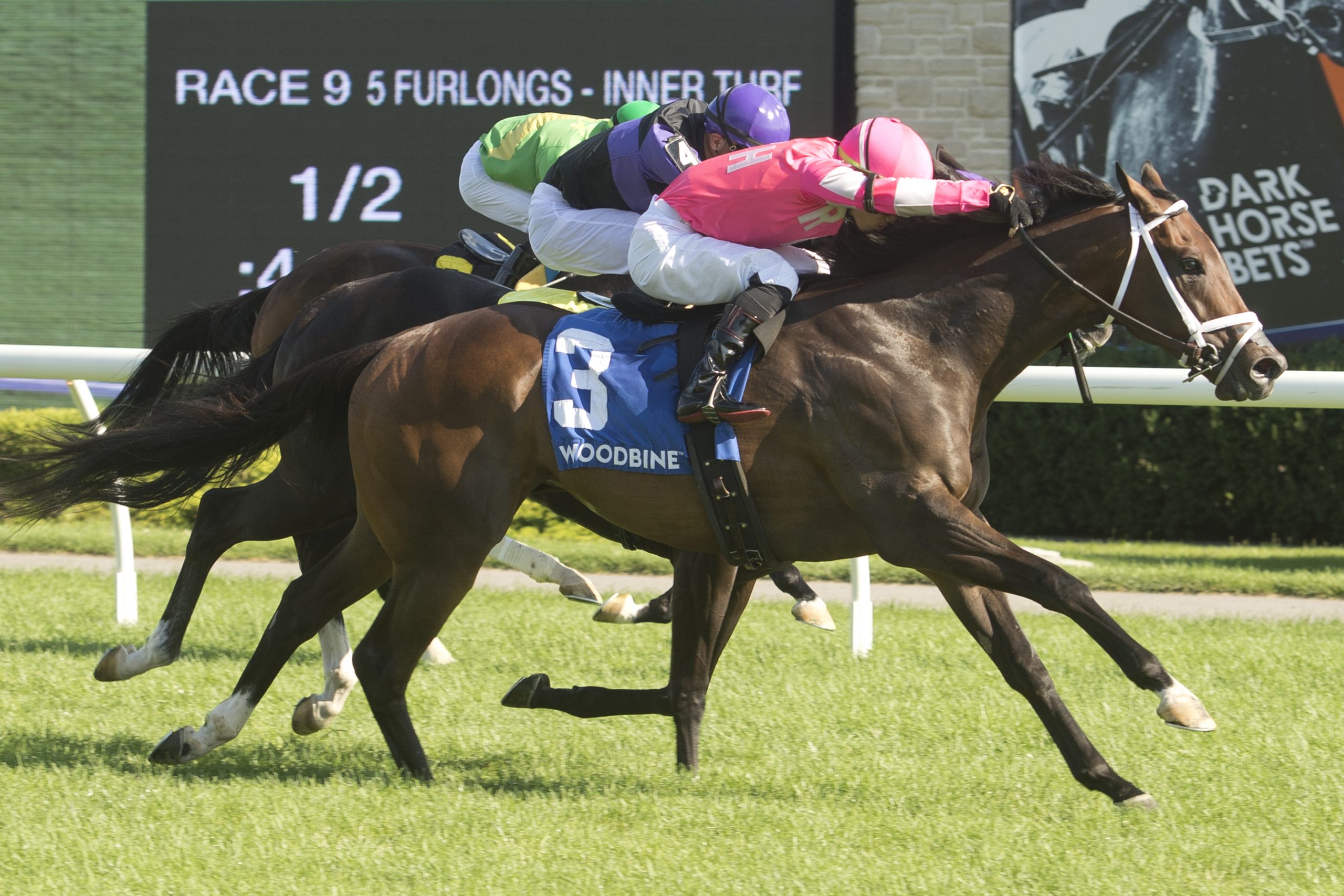 Gatling Gun was stuck behind a wall of horses in Sunday’s second race, a six-furlong sprint on the E.P. Taylor turf, but jockey Emma-Jayne Wilson found a way to get the 4-year-old dark bay off the rail and to the outside for a dramatic head win. Bred, owned and trained by Barbara Minshall, the gelding paid $24.70 for the victory.