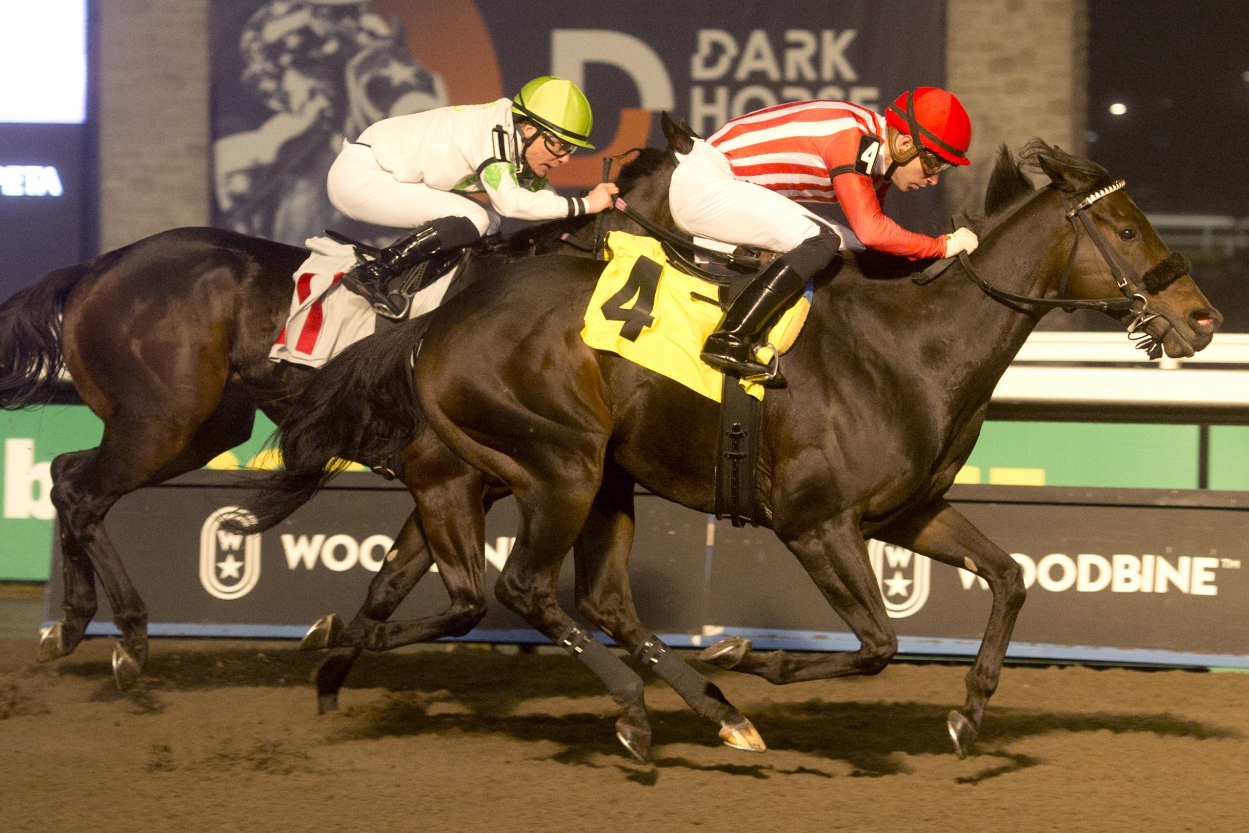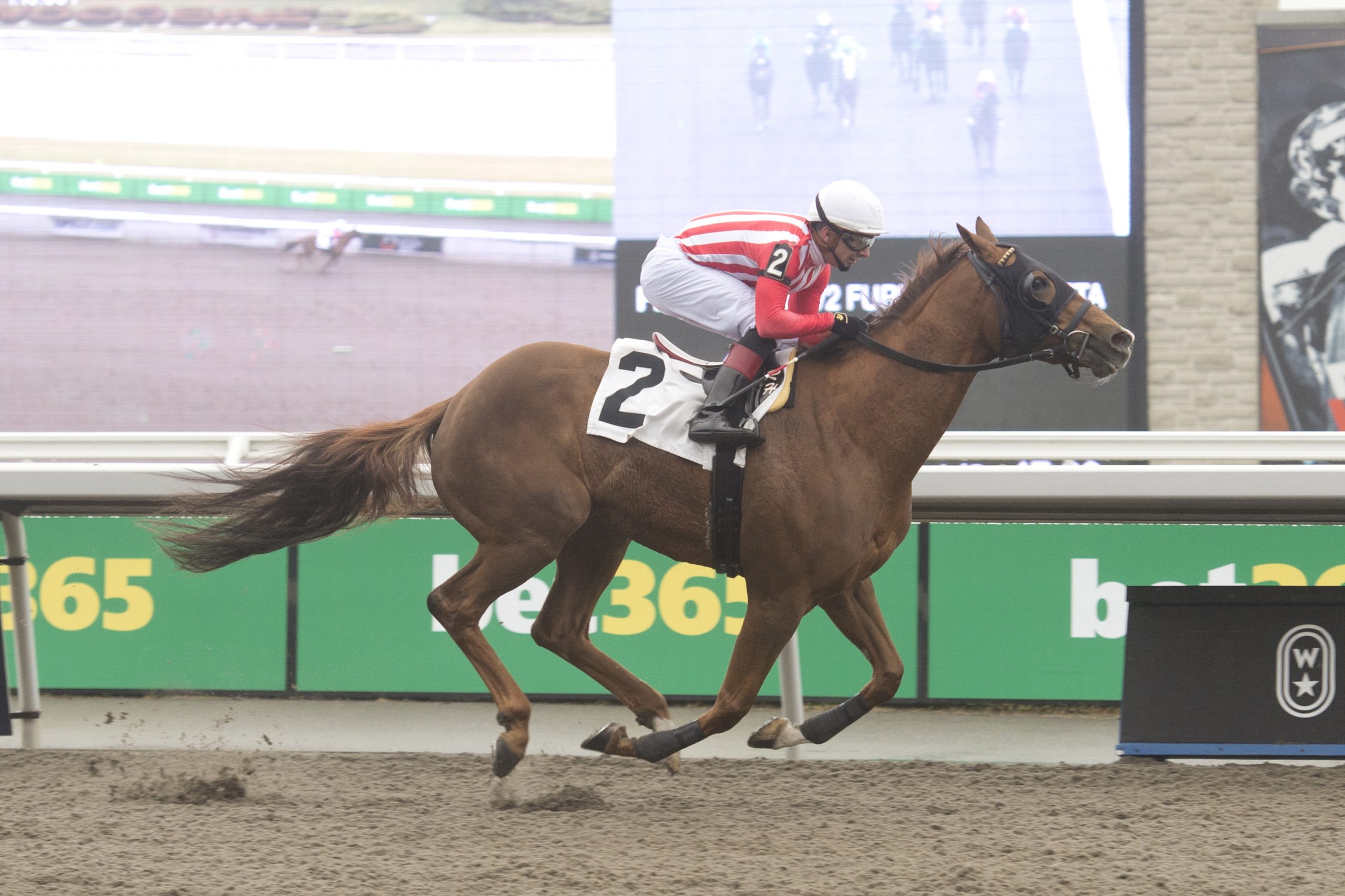 Milestone marker Sunyani, a 3-year-old son of Air Force Blue-Futurista, won Saturday’s first race for trainer Ted Holder and owner David Bloom. With Fraser Aebly in the irons, the dark bay gelding broke his maiden in his 12th start. The Ontario-bred won the seven-furlong Tapeta race by 4 ¼ lengths and paid $10.60 for the victory. Sunyani and jockey Fraser Aebly winning Race 1 on December 2, 2023 at Woodbine (Michael Burns Photo) A Campos trio Jockey Jose Campos made three trips to the winner’s circle on Saturday. He partnered Princess Mayfair to a triumph in the third race, teamed with Prima to take the fifth, and piloted Classy Image to victory in the sixth. Despite an injury this season, Campos has already bested his numbers from 2022 at Woodbine. Princess Mayfair and jockey Jose Campos winning Race 3 on December 2 at Woodbine (Michael Burns Photo) Dance party Frac Dancer, bred and owned by Phoenix Racing, went to-toe-toe early with one rival and then fended off another foe late to win Saturday’s $150,000 Clarendon Stakes. Trained by Mike De Paulo, the 2-year-old son of Frac Daddy now has two wins in as many starts. Frac Dancer and jockey Sahin Civaci winning the Clarendon Stakes on December 2, 2023 at Woodbine (Michael Burns Photo) Bachelor life A 6-year-old son of Not Bourbon-Krz Exec, Bachelor Pad, ridden by Rafael Hernandez, won Sunday’s second race, giving him back-to-back scores. In 30 lifetime starts, the chestnut gelding has recorded 11 wins, to go along with a pair of seconds and five thirds. Bred in Ontario by Colebrook Farms, Bachelor Pad won three straight starts from November 12, 2021, to December 19, 2021. Bachelor Pad and jockey Rafael Hernandez winning Race 2 on December 3, 2023 at Woodbine (Michael Burns Photo) Five-star Sunday Trainer Martin Drexler, who is having a career-best campaign, sent out five winners on Sunday. He won the fourth with Classic Dancer, the fifth with Feelthebeat, the sixth with Hilarious Affair, Have a Souper Day in the eighth and Guildsman in the ninth. Drexler is one win away from 100 on the year. Guildsman and jockey Sahin Civaci winning Race 9 on December 3, 2023 at Woodbine (Michael Burns Photo) Worth hearing “Well, I know the first turn is going to be trouble because everyone wants to get in position, but this horse helped me the whole way. After the first turn, when everyone was in trouble, I got a perfect trip and had lots of horse the whole way.” – Luis Contreras, who rode Conglomerate to victory in Sunday’s $150,000 Valedictory Stakes (G3). Worth watching First-time starter Shamans Girl made her debut in Saturday’s $150,000 Shady Well Stakes. Trained by Harold Ladouceur for owner and breeder Stronach Stables, the daughter of Shaman Ghost-Ginger Brew, with Ryan Munger aboard, rallied from last to spring the upset in the six-furlong race. Worth knowing The final stakes action of the 2023 season is set for December 9th and 10th. On Saturday, Ontario-sired fillies and mares, 3-year-olds and up, tackle 1 1/16 miles on the Tapeta in the $100,000 La Prevoyante. The $100,000 Steady Growth, for Ontario-sired 3-year-olds, also at 1 1/16 miles, highlights Sunday’s card. https://woodbine.com/stakes-schedule/ Share This:Share