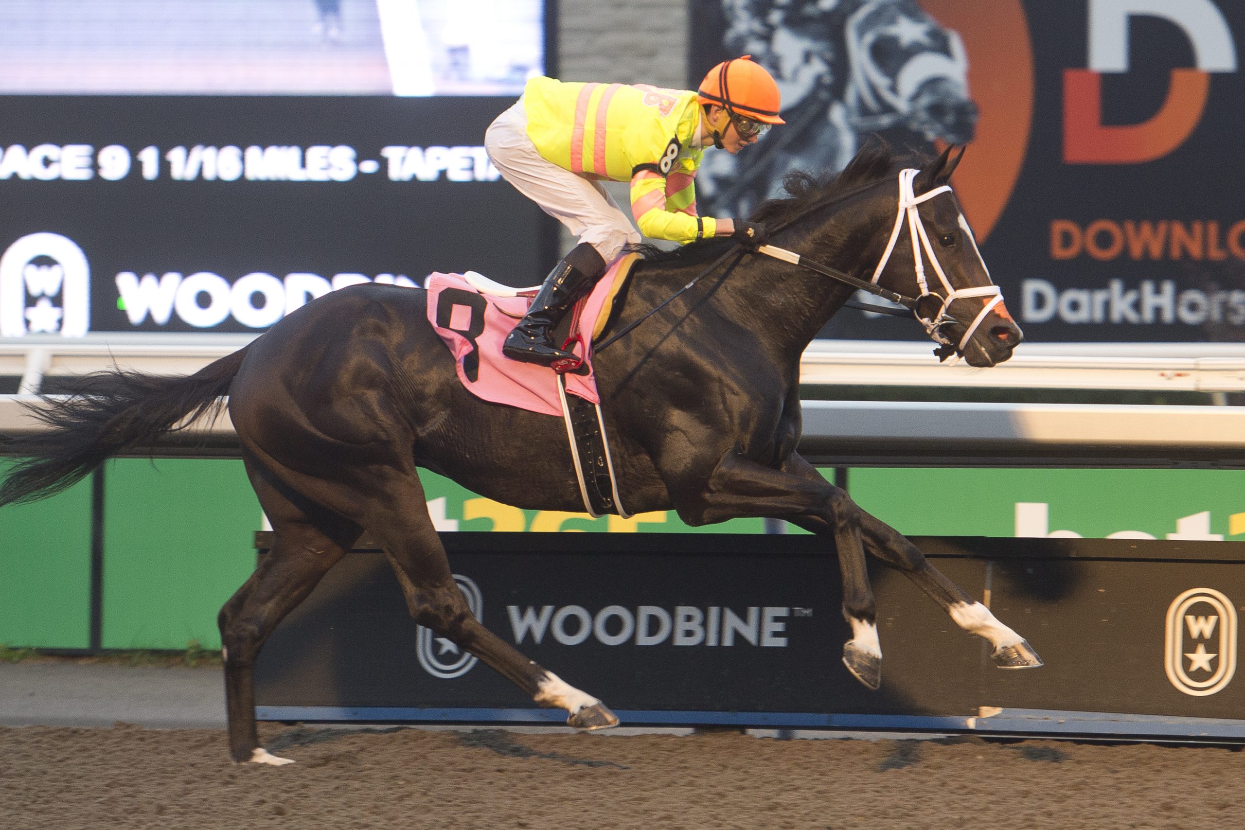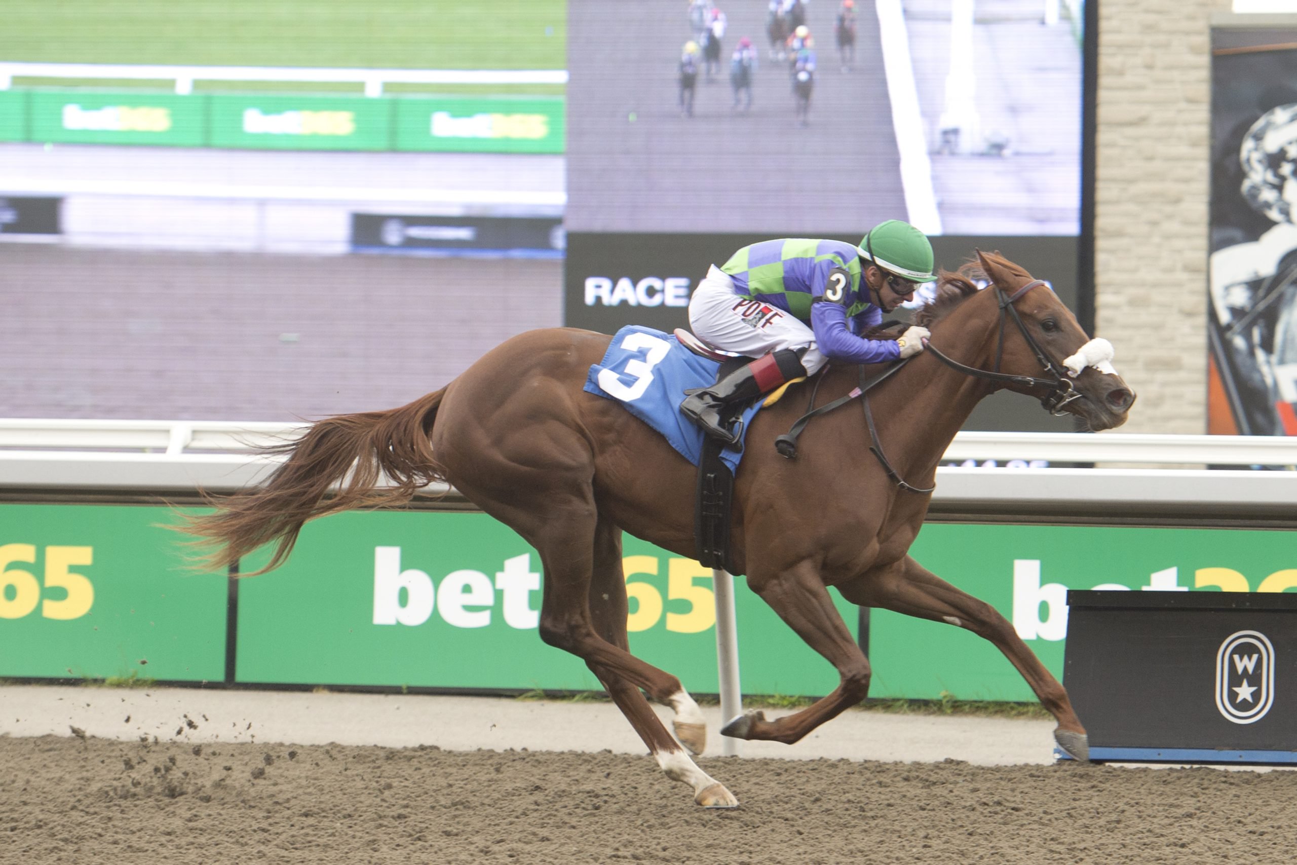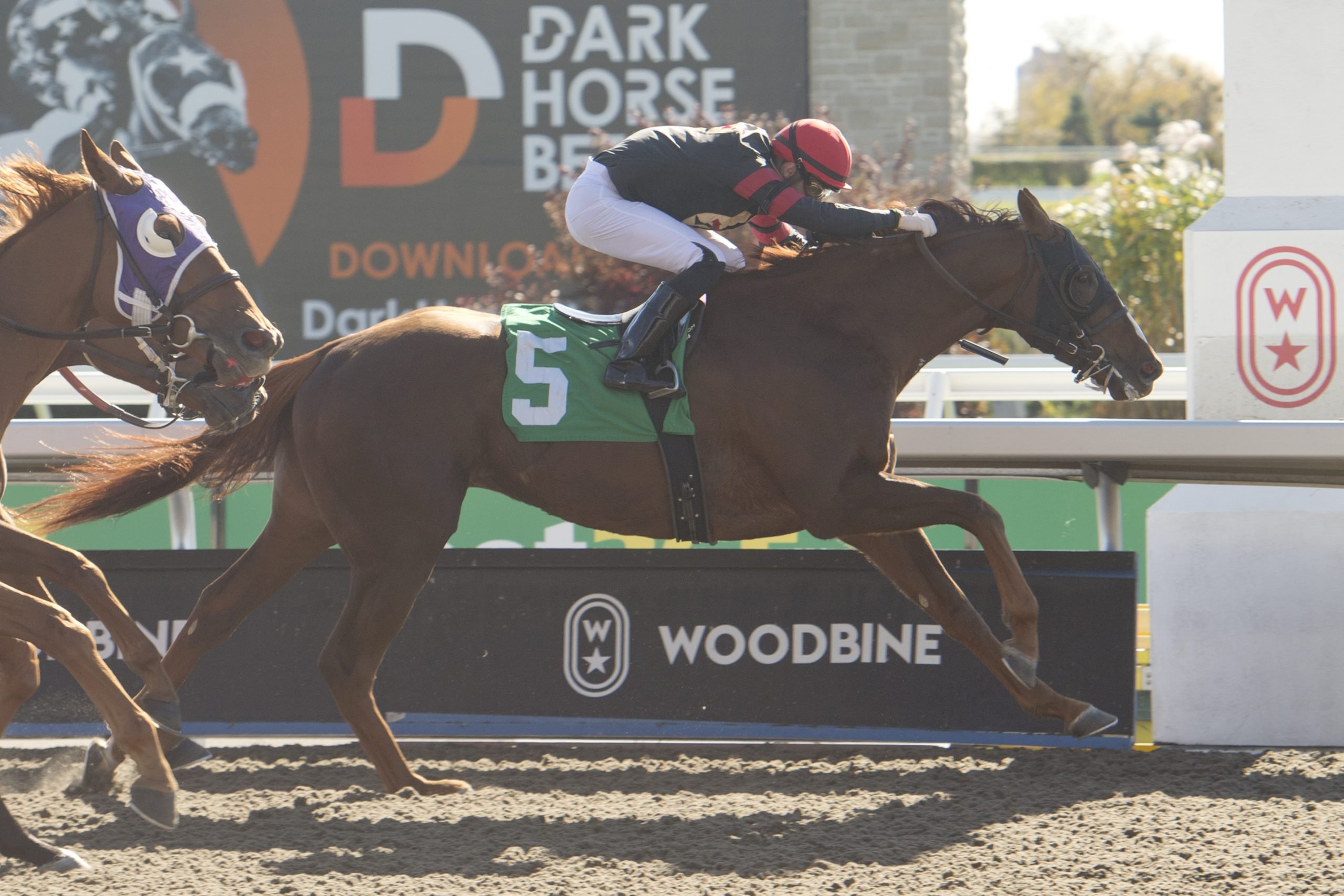 From dusk ‘til dawn Kevin Attard won the Friday nightcap with Mo Tourist and then won the Saturday opener with Hayek (his other trainee, Destiny Ro, was second). The multiple graded stakes-winning trainer, who is closing in on 750 career victories, has eclipsed the $3.2 million (U.S.) mark in purse earnings the past five campaigns. Mo Tourist and jockey Pietro Moran winning Race 9 on October 20, 2023 at Woodbine (Michael Burns Photo) Master class Master Aragorn, under Rafael Hernandez, had an impressive start to her career on Saturday. Bred and owned by Ivan Dalos (Tall Oaks Farm), the 2-year-old daughter of Master-Aragorn Ami notched a 1 ¼-length score in the 5 ½-furlong maiden special weight race. The chestnut paid $12.70 for the win. Master Aragorn and jockey Rafael Hernandez winning Race 5 on October 21, 2023 at Woodbine (Michael Burns Photo) Rhyme time Rapper Zapper, bred (Adena Springs) and owned by Stronach Stables, rallied to win Sunday’s first race, at 1 1/16 miles on the Tapeta, as the even-money choice. The 4-year-old daughter of Ghostzapper-Holy Grace, trained by Mike Doyle, is now 2-2-4 from 15 career starts. Rapper Zapper and jockey Sahin Civaci winning Race 1 on October 22, 2023 at Woodbine (Michael Burns Photo) Staking his claim Trainer Patrick Dixon earned the first stakes win of his career on Sunday when Perfect Crime, with Kazushi Kimura in the irons, stormed home to take the $100,000 Overskate. Owned by Colebrook Farms, the 5-year-old son of Old Forester notched a 1 ¼-length victory in the 7 ½-furlong race over the inner turf. It was the first victory for Perfect Crime since a 6 ½-furlong Tapeta race triumph on October 28, 2022. Perfect Crime and jockey Kazushi Kimura winning the Overskate Stakes on October 22, 2023 at Woodbine (Michael Burns Photo) Worth hearing “He’d been training fantastic after his last race, and I thought he would run a really big race today. I was really excited for him to run. All credit to John Brnjas and the whole Colebrook family for sticking with me as a trainer and everything that we’ve been through.” – Patrick Dixon, after Perfect Crime won the Overskate Stakes. Worth watching Watch one of the most compelling finishes of the 2023 Woodbine Thoroughbred campaign as Breathing Fire and Fashionably Fab fight to the finish in Sunday’s $100,000 Eternal Search Stakes. Worth knowing A pair of $100,000 Ontario Sired Stakes, the South Ocean, for 2-year-old fillies, and Frost King, for 2-year-olds, are set for Saturday. Both will be contested at 6 ½ furlongs over the Tapeta. https://woodbine.com/stakes-schedule/ Chris Lomon, Woodbine Communications / @WoodbineComms Share This:Share