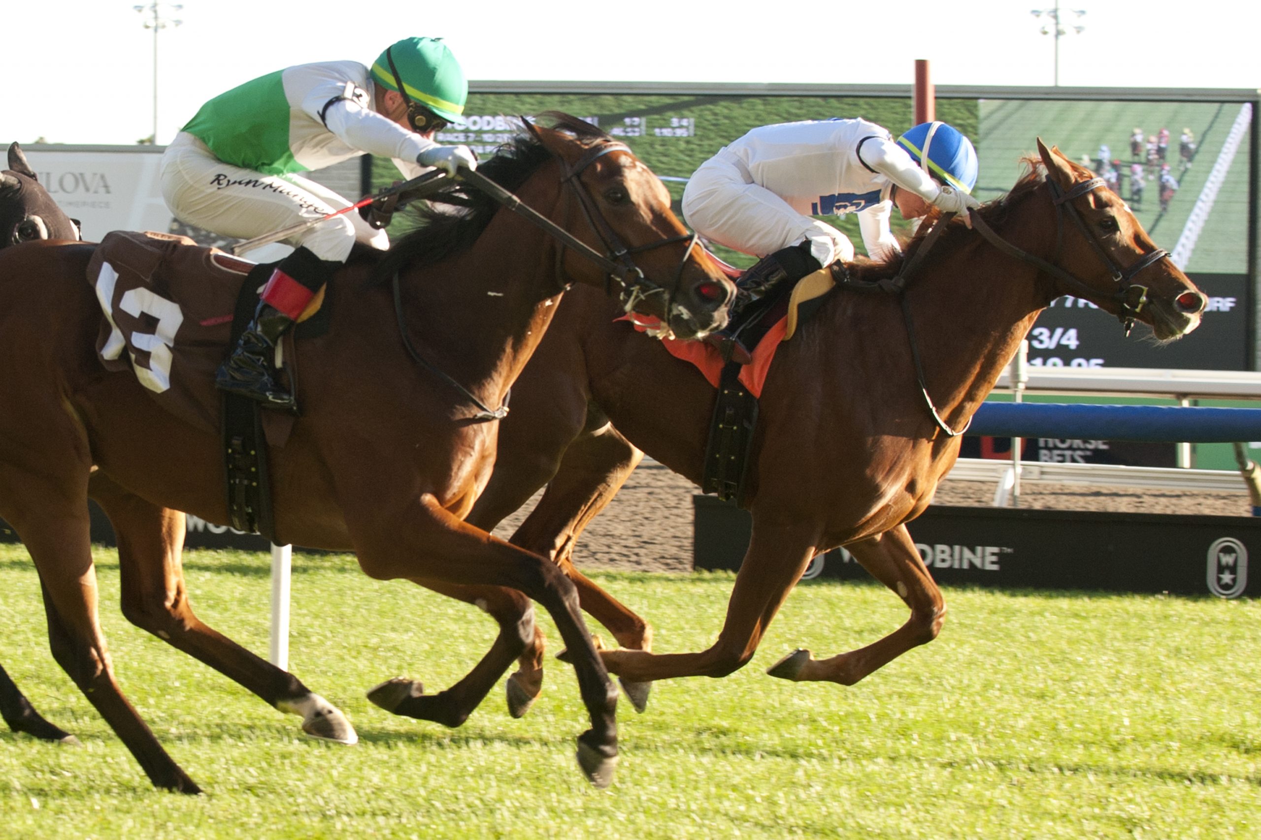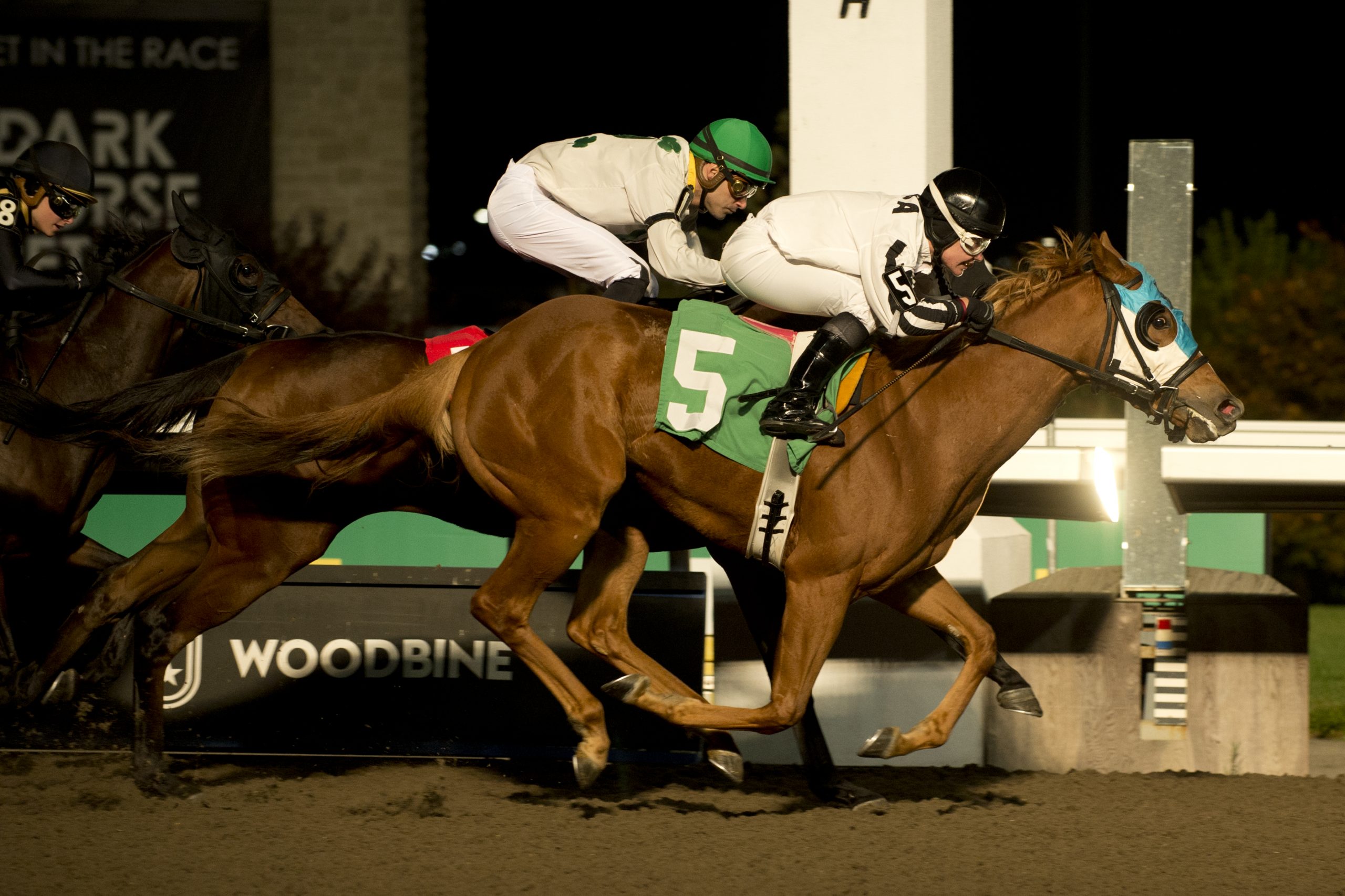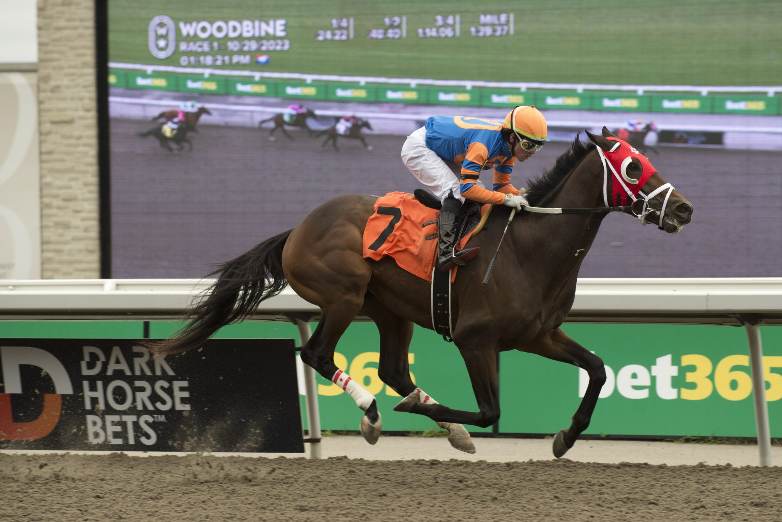 High five, plus three, and a sweep Leading rider Kazushi Kimura won five races on Saturday, including a sweep of the day’s stakes races. In the Frost King, Kimura partnered No More Options to a 16-1 upset score. Two races later, the champion rider was back in the stakes winner’s circle, this time with 7-5 choice Olivia Rose. The native of Hokkaido, Japan, who is closing in on 800 career wins, won three races on Sunday. No More Options and jockey Kazushi Kimura winning the Frost King Stakes on October 28, 2023 at Woodbine (Michael Burns Photo) Hall of Fame exactor Trainer Josie Carroll, inducted into the Canadian Horse Racing Hall of Fame in 2019, went one-two in Saturday’s seventh race. More Money Hunny bested stablemate Vazhi by a head in the seven-furlong turf race. An all-Carroll exactor returned $55.40 for a $1 bet. The multiple graded stakes-winning conditioner is less than 30 wins away from 1,000 for her career. More Money Hunny and jockey Kazushi Kimura winning Race 7 on October 28, 2023 at Woodbine (Michael Burns Photo) Perfect trip Helluva Holiday, a 3-year-old daughter of Firing Line-Holidejavu, lit up the tote board in Saturday’s final race. Under Skye Chernetz, the chestnut filly got by a game rival to notch a head victory in the seven-furlong race over the Tapeta. Trained and co-owned by David Cotey, Helluva Holiday paid $53.30 for the win. Helluva Holiday and jockey Skye Chernetz winning Race 11 on October 28, 2023 at Woodbine (Michael Burns Photo) Dazzling debut Loose Wire, a 3-year-old son of Street Sense-Dance With Doves, impressed in his first career start, crossing the wire a 6 ¼-length winner in Sunday’s first race. Trained by Kevin Attard for Repole Stable and St. Elias Stable LLC, the bay colt was the 2-1 second choice in the 1 1/8-mile Tapeta race. Loose Wire and jockey Kazushi Kimura winning Race 1 on October 29, 2023 at Woodbine (Michael Burns Photo) Worth hearing “We’re very, very happy, and I’m happy for my dad. Eighty-two-years-old and this is a big deal for him. That’s why I do it, for my dad. I’m very blessed.” – Mary Self, owner of Frost King winner No More Options. Worth watching Reload’s Rascal, a 4-year-old son of Reload-Mi’an Mar, had a rough start to Saturday’s third race, but a patient ride from Patrick Husbands and a game effort from the bay gelding ended in a hard-fought score. Worth knowing A pair of $150,000 Grade 3 stakes, the Mazarine, and the Grey, share the spotlight on Saturday’s card. The $175,000 Grade 2 Autumn, for 3-year-olds and up, is on tap for Sunday. https://woodbine.com/stakes-schedule/ Chris Lomon, Woodbine Communications / @WoodbineComms Share This:Share